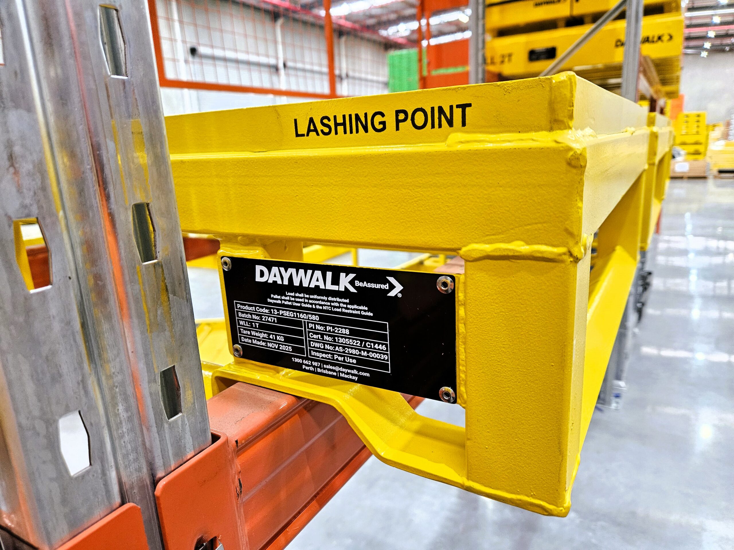 DAYWALK’s 1T mesh steel pallet offers exceptional value for money. As an off-the-shelf pallet that’s pre-engineered, certified and transport rated — there’s no delays or downtime.